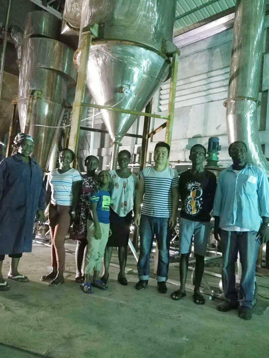 湖南富達(dá)日化高塔噴霧洗衣粉設(shè)備在南美國家成功投產(chǎn),老外贊嘆不已,下午,工程師回國前和南美用戶開心留影。