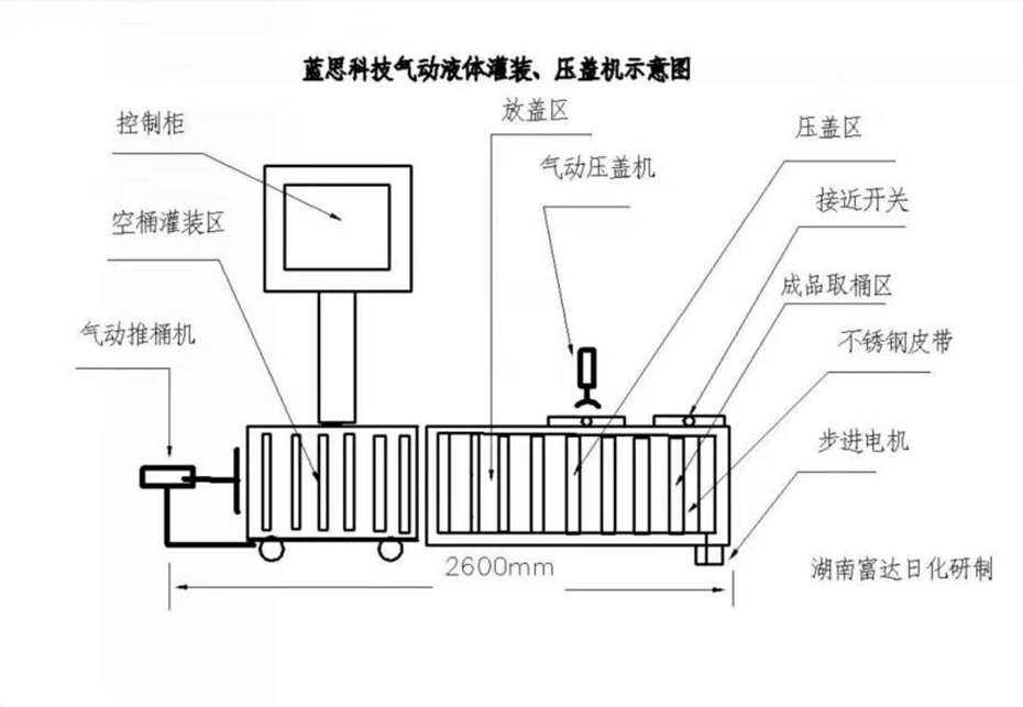 湖南富達日化研制的液體大桶灌裝壓蓋一體機,為蘋果手機制造商湖南藍思科技量身定做。