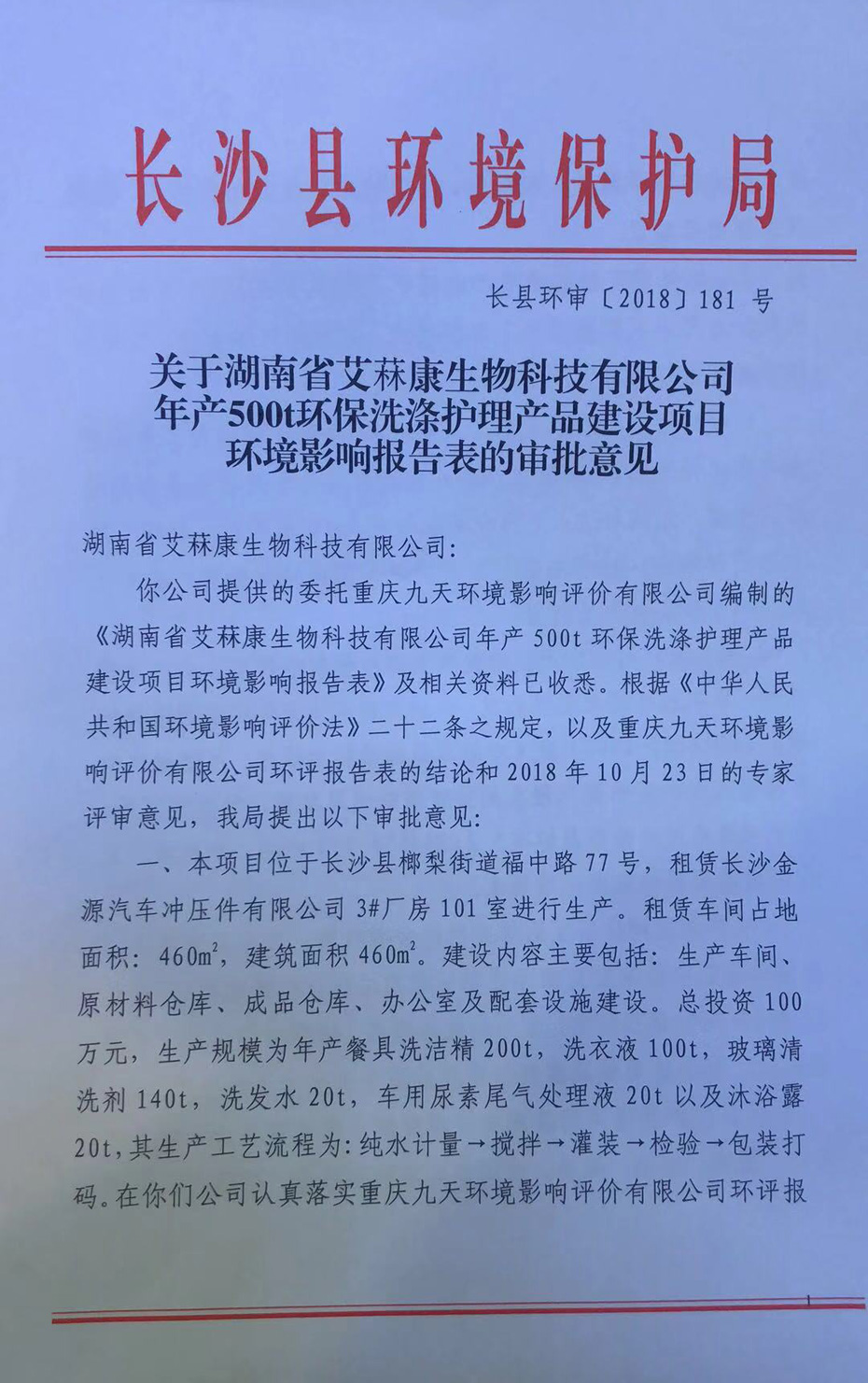 湖南富達(dá)日化集團(tuán)艾菻康生物科技洗滌產(chǎn)品和化妝護(hù)理產(chǎn)品及汽車用品通過環(huán)保局環(huán)評(píng)審查合格。