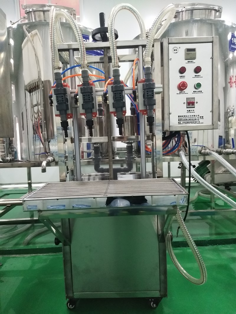 定量灌裝機:通過攪拌罐出來的成品,靜置放置后,無泡后,需要灌裝,手工灌裝不夠精準,效率低,需要一臺灌裝機來完成。活塞式的定量灌裝機,可對不同高粘度流體進行灌裝,灌裝精準,操作簡單,便于維護且灌裝無滴漏。灌裝頭可自由選配,有2頭、4頭、6頭多種選擇。操作簡單,易上手。