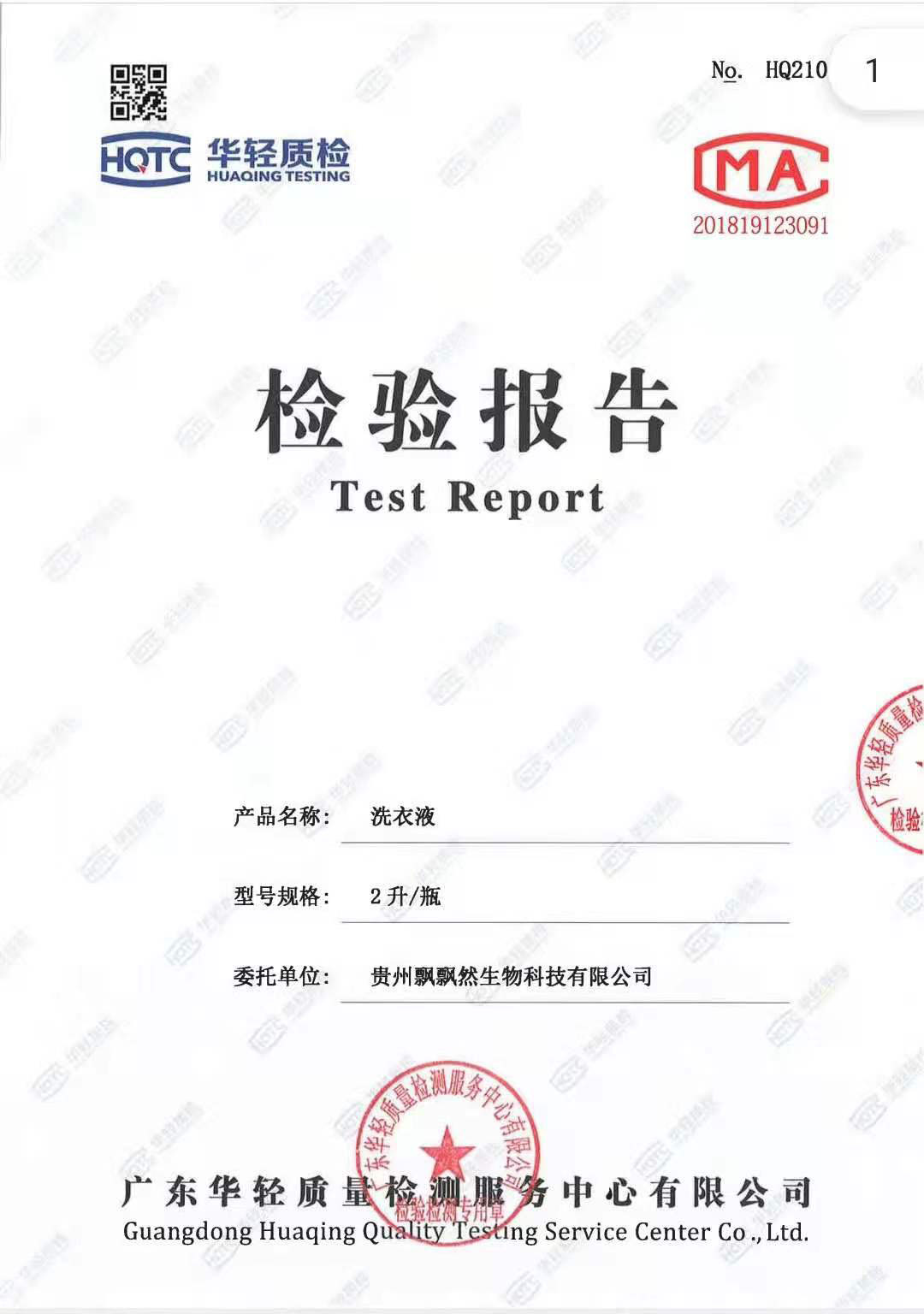 多項專利發(fā)明人王先軍 手機:150-7483-5702 手機:195-7316-0288祝賀貴州飄飄然洗潔精洗衣液產品通過CMA質量檢測合格!